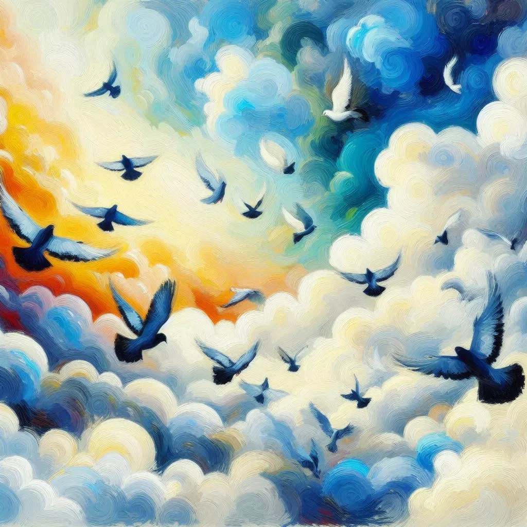 לעומתו היונה היא יצור בעל רצון עצמי. המעוף שלה הוא מכוון מטרה – לחזור הביתה.